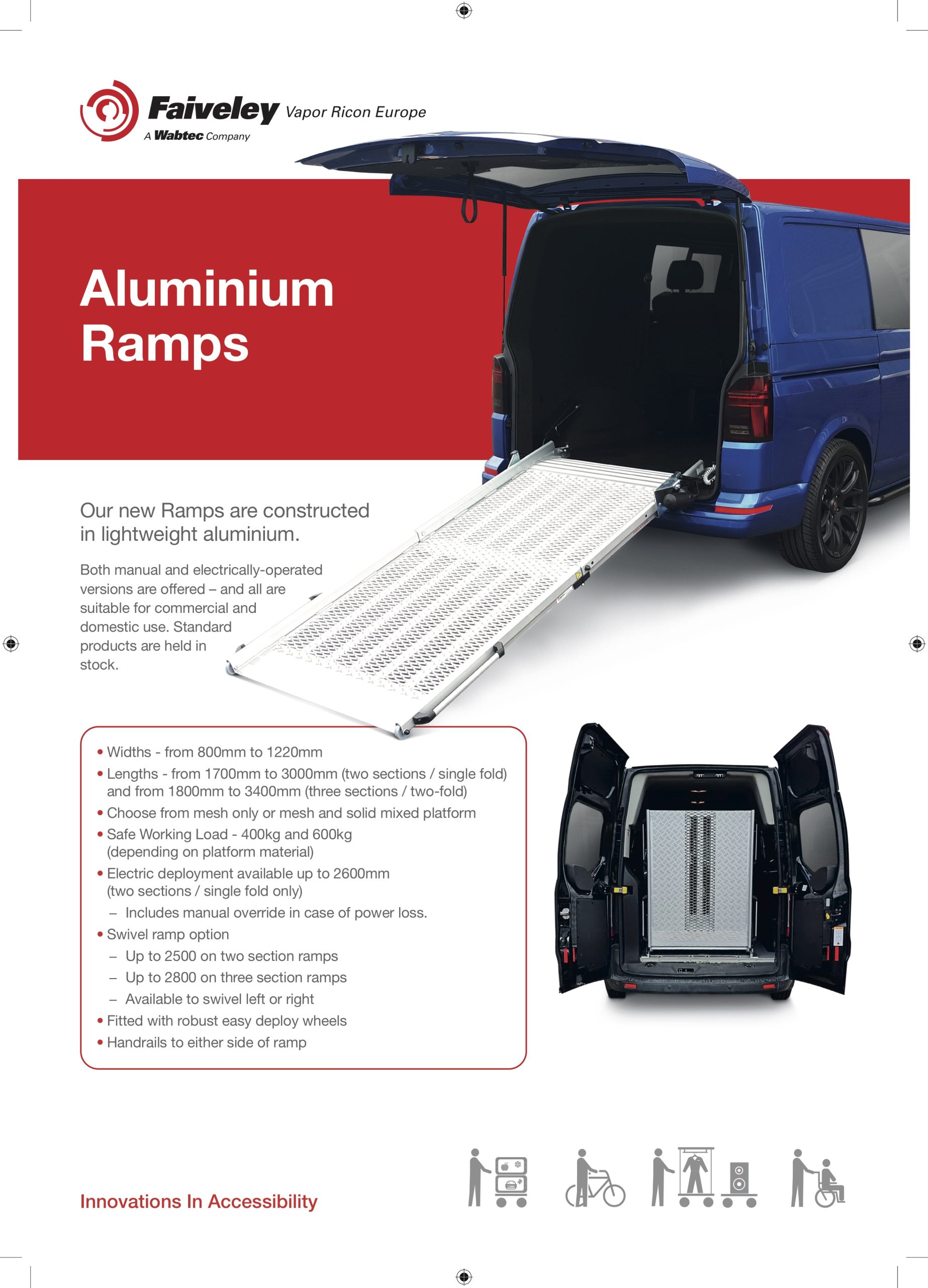 The range now includes the new Lightweight Aluminium Ramp which is electronically operated via a handheld remote, providing a greater ease of operation, but also included is a manual override option in case of an emergency or loss of power to the vehicle.