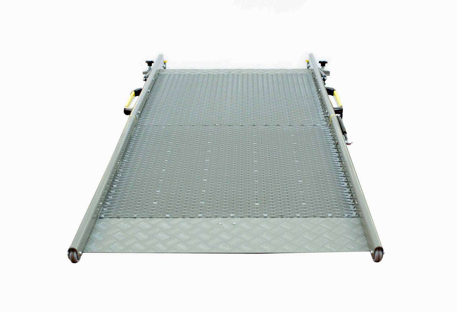 Available in a mesh, or mixed material platform, the ramp weight ranges from 32kg to 39Kg, depending on style and size chosen, which means the impact on maximum load capacity will be greatly reduced. In addition, the new ramp boasts a safe working load of up to 600kg (on some models) and handrails are provided to ensure maximum safety.